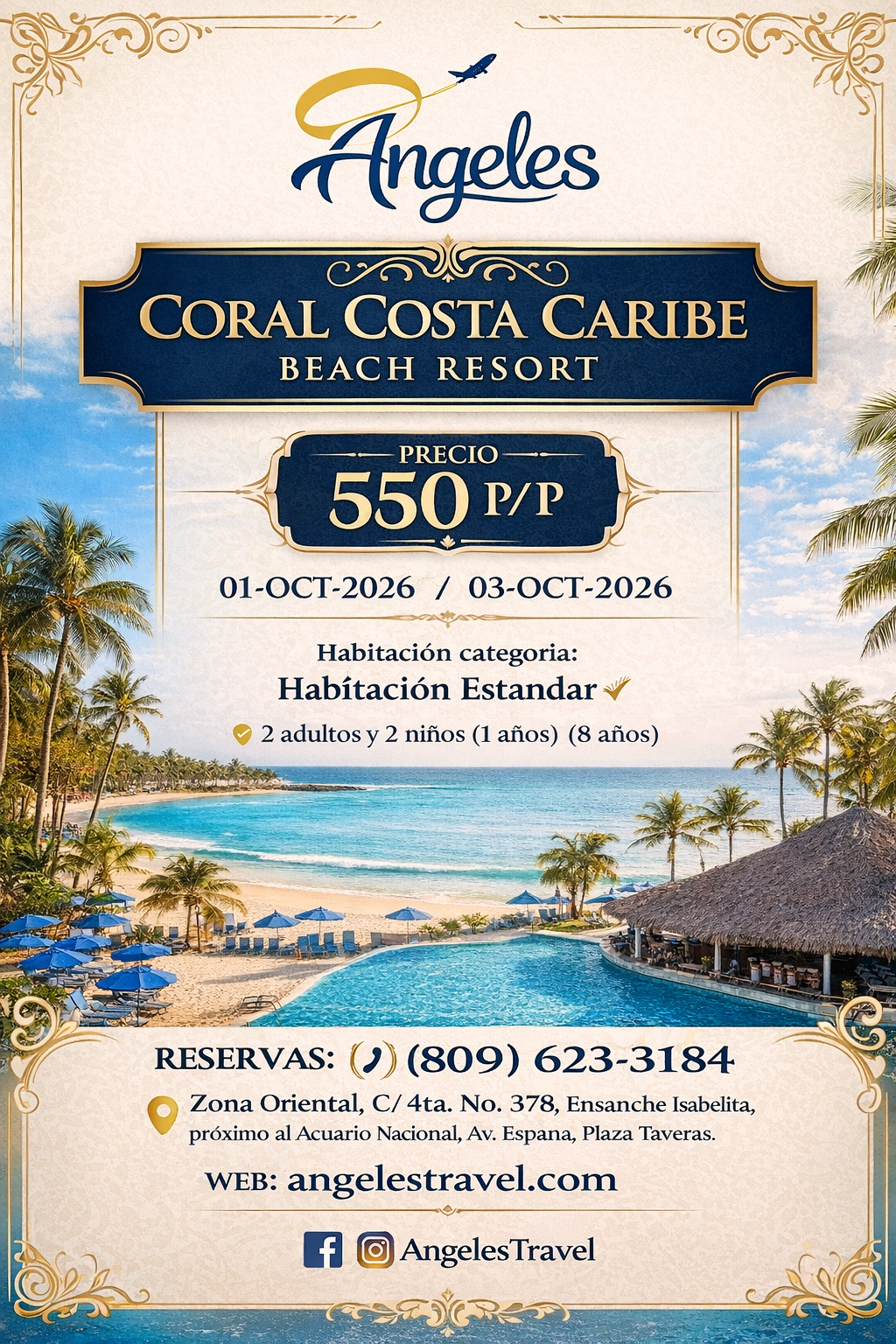 Coral Costa Caribe Beach Resort | 01 al 03 de Octubre 2026 | Habitación Estándar | Todo Incluido